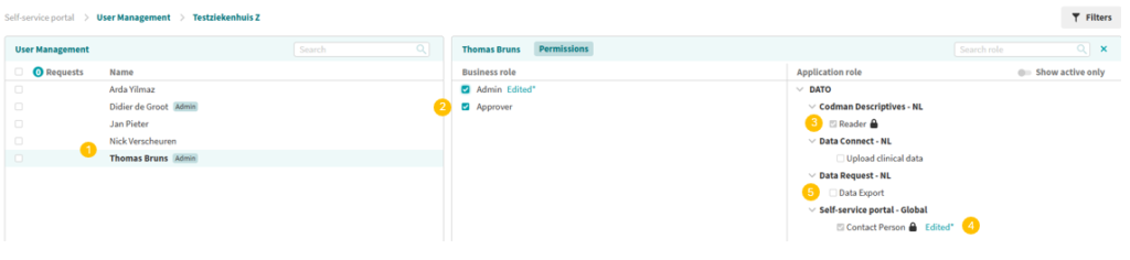 For each user, you can modify roles and permissions. This determines which registries and functions they have access to.