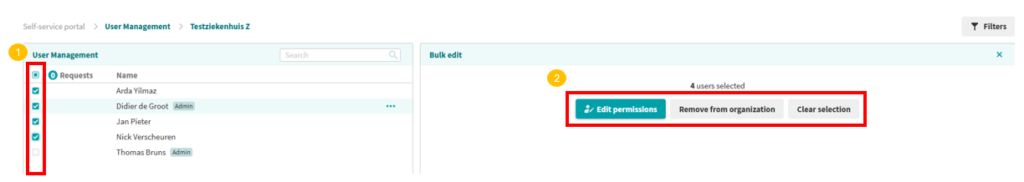 With group editing, you can adjust roles and permissions for a group of users in a single action. This makes management especially more efficient when:
